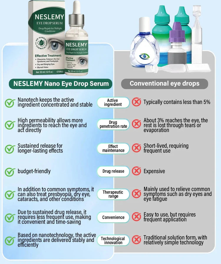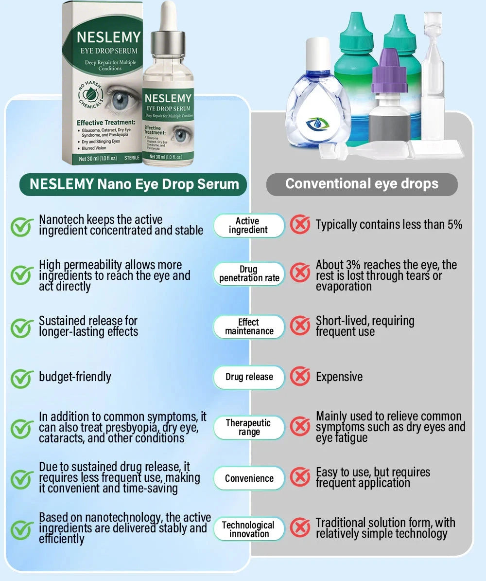 The Breakthrough: Nano-Shuttle Delivery System NESLEMY™ uses breakthrough nano-technology to create microscopic "shuttles" that slip past your eye's defenses -like armored cars delivering precious cargo directly to your eye cells. The result?Instead of 5% absorption, you get up to 20x more active ingredients reaching the cells that desperately need them.